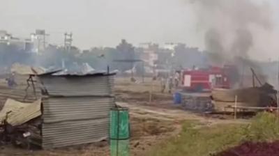 फतेहपुर: उत्तर प्रदेश के फतेहपुर (Fatehpur, Uttar Pradesh) में दिवाली (Diwali 2025) से पहले बड़ी आग लगने की घटना सामने आई हैं. यहां महात्मा गांधी परास्नातक महाविद्यालय के परिसर में लगे पटाखों के बाजार में रविवार दोपहर भीषण आग लग गई. इस दौरान पटाखों के तेज धमाके के साथ आग एक से दूसरी दुकान में फैलती चली गई. कुछ ही देर में आग ने मैदान में लगी सभी 60 से अधिक पटाखों की दुकानें जलकर राख हो गई. बताया गया है कि इस दौरान कई दुपहिया वाहन भी आग की चपेट में आकर जल गए और कई दुकानदार भी झुलस गए हैं. धमाके और धुंए के कारण पूरे इलाके में दहशत फैल गई.