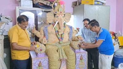 मूर्तिकार अशोक साहू ने बताया कि, ''अन्य तरह की प्रतिमाओं से प्रदूषण बढ़ने का खतरा रहता है, इसलिए इको फ्रेंडली गणेश प्रतिमा तैयार की है. इस तरह की प्रतिमा का जब विसर्जन किया जाता है तो वह पूरी तरह से नदी तालाब में समा जाती है और इसमें जो तत्व रहते हैं जो जलीय जंतुओं का आहार बन जाते हैं. इस बार जो प्रतिमा बनाई गई है वह 38वीं है.''