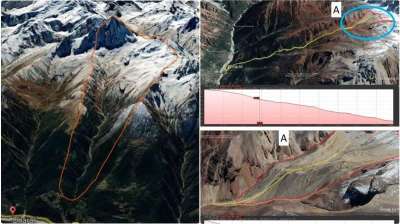 प्रथम दृष्टया अवलोकन: धराली गांव से लगभग 7 किमी ऊपर की ओर, समुद्र तल से लगभग 6,700 मीटर की ऊंचाई पर स्थित, हिमनदों से बने मोटे तलहटी निक्षेपों का एक महत्वपूर्ण समूह पाया गया है. इन निक्षेप अनुमानित ऊर्ध्वाधर मोटाई 300 मीटर है. इसका क्षेत्रीय विस्तार 1.12 वर्ग किमी है. इसकी संरचना अनुमानित हिमोढ़ और हिमनद-नदी पदार्थ की है.अवस्था की बात करें तो एक लटकते हिमनद गर्त के भीतर स्थित असंगठित पिंड है.