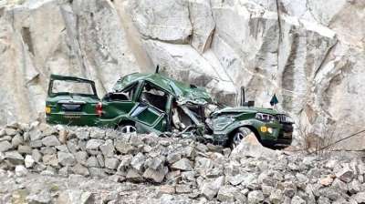 लद्दाख: केंद्रशासित प्रदेश लद्दाख के दुरबुक में सैन्य काफिले के एक वाहन पर विशाल चट्टान गिर जाने से उसमें सवार एक लेफ्टिनेंट कर्नल और एक जवान की मौत हो गई, जबकि मेजर रैंक के दो अधिकारी और एक कैप्टन गंभीर रूप से घायल हो गए। मृतकों की पहचान लेफ्टिनेंट कर्नल भानु प्रताप सिंह और लांस दफादार दलजीत सिंह के रूप में हुई है। घायलों में मेजर मयंक शुभम, मेजर अमित दीक्षित और कैप्टन गौरव शामिल हैं।