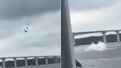 गश्त के दौरान हादसा: पुलिस का हेलिकॉप्टर नदी में गिरा