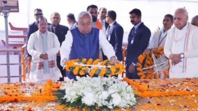 मुख्यमंत्री नीतीश कुमार ने कार्यक्रम की तस्वीरें साझा करते हुए सोशल मीडिया प्लेटफॉर्म ‘एक्स’ पोस्ट में लिखा, “भारत के प्रथम राष्ट्रपति देशरत्न डॉ. राजेंद्र प्रसाद जी की जयंती के अवसर पर राजेंद्र चौक स्थित उनकी प्रतिमा स्थल पर आयोजित राजकीय समारोह में उनके चित्र पर माल्यार्पण कर उन्हें नमन किया। साथ ही राजेंद्र घाट स्थित उनकी समाधि स्थल पर पुष्प चक्र अर्पित कर उन्हें भावभीनी श्रद्धांजलि अर्पित की।”