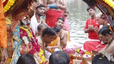 कार्तिक माह की पहली सवारी विधिवत पूजन- अर्चन के बाद महाकालेश्वर मंदिर से गुदरी चैराहा, बक्षी बाजार, कहारवाडी होते हुए क्षिप्रा के रामघाट क्षिप्रा तट पहुंची. जहं पर भगवान मनमहेश का मां क्षिप्रा के जल से पूजन किया गया. पूजन के बाद सवारी रामघाट से गणगौर दरवाजा, मोढ़ की धर्मशाला, कार्तिक चैक, खाती का मंदिर, सत्य-नारायण मंदिर, ढाबा रोड, छत्री चैक, गोपाल मंदिर पहुंची. गोपाल मंदिर पर पूजा के बाद सवारी पटनी बाजार, गुदरी चैराहा होते हुए महाकालेश्वार मंदिर लौटी.