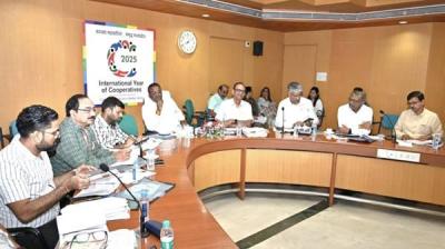 भोपाल : अन्तर्राष्ट्रीय सहकारी वर्ष, 2025 के दौरान अपेक्स बैंक के प्रदेश के शाखा प्रबंधकों की बैठक बुधवार को अपेक्स बैंक समन्वय भवन स्थित सभागार में हुई। इस अवसर पर बैंक के प्रबंध संचालक मनोज गुप्ता ने शाखाओं द्वारा की गई अमानत संग्रहण, ऋण वितरण, वसूली एवं बीमा योजनाओं की समीक्षा करते हुये निर्देशित किया कि प्रतिस्पर्धा के दौर में अपने आप को बेहतर साबित करने की दिशा में सभी अधिकारी पूरी ईमानदारी एवं लगन से अपने उत्तरदायित्वों का निवर्हन करें। उन्होंने 22 अक्टूबर तक चलने वाले बचत माह के दौरान व्यक्तिगत हितग्राहियों को विभिन्न प्रयोजनों यथा - आवास एवं अचल सम्पत्ति के बंधक पर ऋण पर 8.00 प्रतिशत, वाहन ऋण 8.50 प्रतिशत एवं आवास ऋण 9.00 प्रतिशत ब्याज पर उपलब्ध कराने के प्रयास करें।