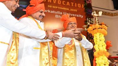 भोपाल : राज्यपाल एवं कुलाधिपति मंगुभाई पटेल ने कहा कि विद्यार्थी अपने माता-पिता और गुरूजनों के योगदान के प्रति हमेशा कृतज्ञ रहें। सफलता के बाद भी उनका हमेशा सम्मान करें। दीक्षांत शपथ का प्रतिदिन मनन करें और जीवन भर उसका अनुसरण भी करें। राज्यपाल पटेल ने कहा कि प्रधानमंत्री नरेन्द्र मोदी के नए, डिजिटल और "विकसित भारत" के सपने को साकार करने में विश्वविद्यालयों की भूमिका बहुत महत्वपूर्ण है। दीक्षांत, वह अवसर है जब शैक्षणिक यात्रा की पूर्णता के साथ, समाज और राष्ट्र की सेवा यात्रा का शुभारंभ होता है। यह केवल डिग्री प्राप्त करने का उत्सव नहीं, बल्कि विद्यार्थियों के वर्षों की मेहनत, अनुशासन और गुरुजनों के सफल मार्गदर्शन का प्रतिफल है। राज्यपाल पटेल सोमवार को बरकतउल्ला विश्वविद्यालय, भोपाल के दीक्षांत समारोह को संबोधित कर रहे थे।