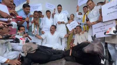 कांग्रेस ने विधानसभा में भैंस के सामने बीन बजाकर किया प्रदर्शन