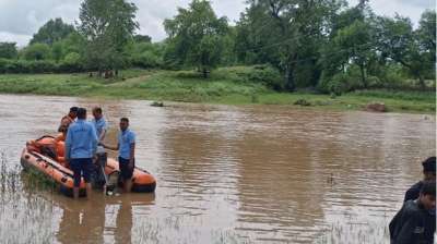 शिवपुरीः जिले में पिछले दो दिनों से झमाझम बारिश का दौर जारी है। इस दौरान लोगों की लापरवाही के चलते कई हादसे सामने आ रहे हैं। ऐसा ही एक हादसा जिले के रन्नौद कस्बे से सामने आया। गांव से निकलने वाली बसेड़ी नदी में नहाने गया 25 वर्षीय युवक सोनू जाटव लापता हो गया। देर रात तक जब वह घर नहीं लौटा तो परिजनों ने रन्नौद थाना पहुंचकर गुमशुदगी की सूचना दी। युवक के गायब होने की सूचना मिलने पर पुलिस तत्काल मौके पर पहुंची। घटनास्थल पर पहुंचने के साथ ही मामले की जानकारी एसडीईआरएफ को दी गई। शुक्रवार दोपहर करीब 3 बजे एसडीईआरएफ की रेस्क्यू टीम नदी पर पहुंची और युवक की तलाश शुरू की गई।