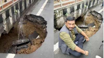 भारी मानसून में खोली सड़क पर गुणवत्ता व निगरानी की पोल,बोर्ड ऑफिस चौराहा में लगभग 10 फीट गड्ढा