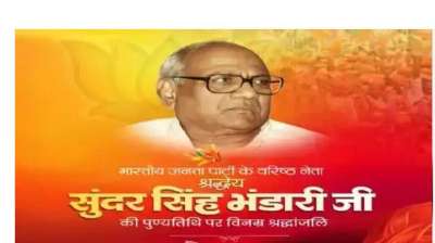 भोपाल : मुख्यमंत्री डॉ. मोहन यादव ने भारतीय जनता पार्टी के वरिष्ठ नेता, श्रद्धेय सुंदर सिंह जी भंडारी की पुण्यतिथि पर श्रद्धांजलि अर्पित की। मुख्यमंत्री डॉ. यादव ने कहा कि युवाओं को मां भारती के लिए समर्पण के संस्कार प्रदान करने, जनसेवा और संगठन की सुदृढ़ता के लिए भंडारी जी ने जीवन समर्पित कर दिया। उनके विचार सदैव प्रेरणा देते रहेंगे।