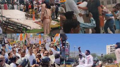 भोपाल में किसानों के मुद्दों के विरोध में कांग्रेस का प्रदर्शन, प्रदर्शन के बीच टूटा मंच, कई नेता घायल