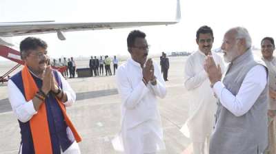 प्रधानमंत्री नरेन्द्र मोदी को इंदौर विमानतल पर भावभीनी विदाई