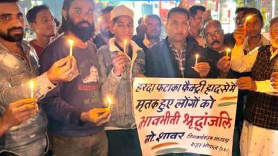 हरदा में हुए हादसे में जिला कार्यवाहक अध्यक्ष मो शावर व कांग्रेस कार्यकर्ताओं ने मृतकों को कैंडल जला कर दी श्रद्धांजलि