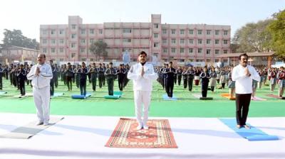 मुख्यमंत्री ने किया सूर्य नमस्कार एवं प्राणायाम - सुभाष स्कूल में आयोजित कार्यक्रम में हुए शामिल