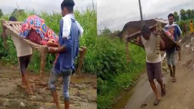 जेवड़ा गांव में सड़क संकट, गर्भवती को कंधे पर उठाकर पहुंचाया अस्पताल