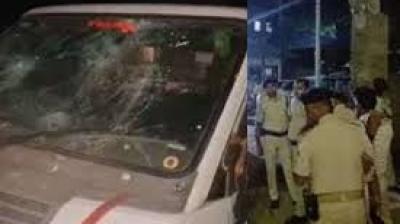 भीड़ ने गुस्से में आकर वाहन में तोड़फोड़ शुरू कर दी