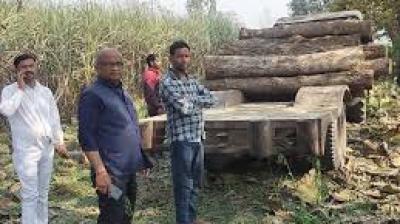 अवैध लकड़ी परिवहन पर कार्रवाई, सागौन-हल्दू से भरा ट्रैक्टर जब्त