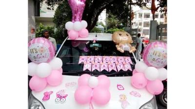 कार पर बैनर लगाकर अस्पताल से घर तक निकाली खुशी की झांकी