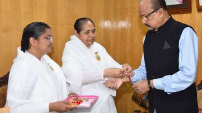 राज्यपाल रमेन डेका को ब्रम्हकुमारी बहनों ने बांधी राखी