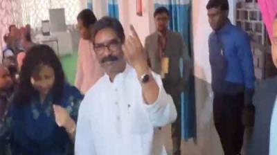 झारखंड में हेमंत सोरेन और पत्नी ने डाला वोट, आम जनता को किया प्रेरित