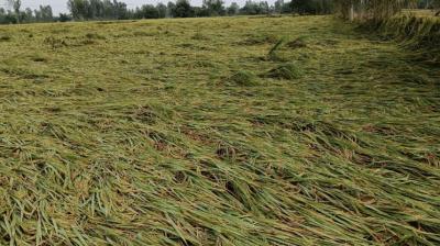 गुरदासपुर में आंधी-तूफ़ान का असर, ज़मीन पर बिछ गई मेहनतकश किसानों की धान और गन्ने की फसल