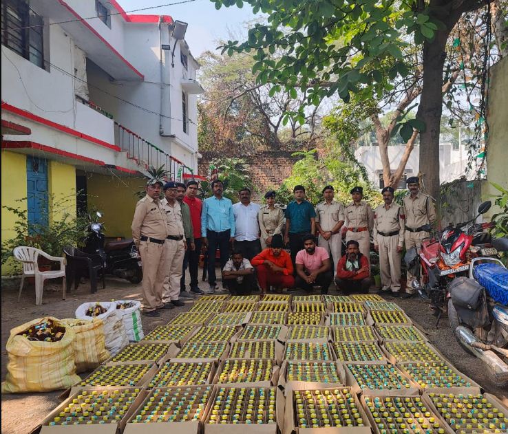 रायपुर। सचिव सह आबकारी आयुक्त सुश्री आर संगीता के निर्देशानुसार, कलेक्टर गौरव कुमार सिंह के दिशा-निर्देश में एवं उपायुक्त आबकारी विकास कुमार गोस्वामी के मार्गदर्शन में आबकारी विभाग रायपुर द्वारा आचार संहिता के दौरान अवैध मदिरा परिवहन/विक्रय/धारण की सूचना पर त्वरित् विधिवत् प्रभावी कार्यवाही करते हुये कुल 597 प्रकरण कायम कर 15 लाख रूपये से अधिक मूल्य की 2570 लीटर देशी/विदेशी/महुआ शराब एवं लगभग 11 लाख रूपये मूल्य की 16 दोपहिया वाहन एवं 01 कार जप्त किया गया है। मुखबीर सूचना के आधार पर आबकारी विभाग ने चिन्हांकित स्थलों पर छापामार कार्यवाही कर उपरोक्त कार्यवाही की। इसके अलावा यूटर्न कैफे, सांगरिया, सुकुन, नया रायपुर स्थित अरण्यम कैफे, व्ही.आई.पी. रोड़ स्थित पिंड बलूची कैफे, वेलकम ढाबा समोदा, महाराजा ढाबा कोलर, शुभम ढाबा, दबंग ढाबा आरंग में आबकारी अधिनियम की विभिन्न धाराओं के अंतर्गत प्रकरण पंजीबद्ध कर आरोपियांे को जेल दाखिल किया गया। कैफे/ढाबा संचालकों को बिना लायसेंस ग्राहकों को मदिरा नही परोसने की चेतावनी भी दी गई। आबकारी आयुक्त विकास गोस्वामी ने कहा कि जिले में शराब एवं मादक पदार्थो के अवैध विक्रय, परिवहन एवं धारण पर रोकथाम हेतु शिकायत दर्ज कराये जाने हेतु एवं मदिरा दुकानों से संबंधित शिकायते टेलीफोन नंबर 0771-2428201 एवं टोल फ्री नंबर 14405 जारी किया गया है जिसमें कोई भी आम नागरिक शिकायत कर सकते है जिस पर त्वरित् कार्यवाही की जायेगी। शिकायतकर्ता का नाम गोपनीय रखा जायेगा।