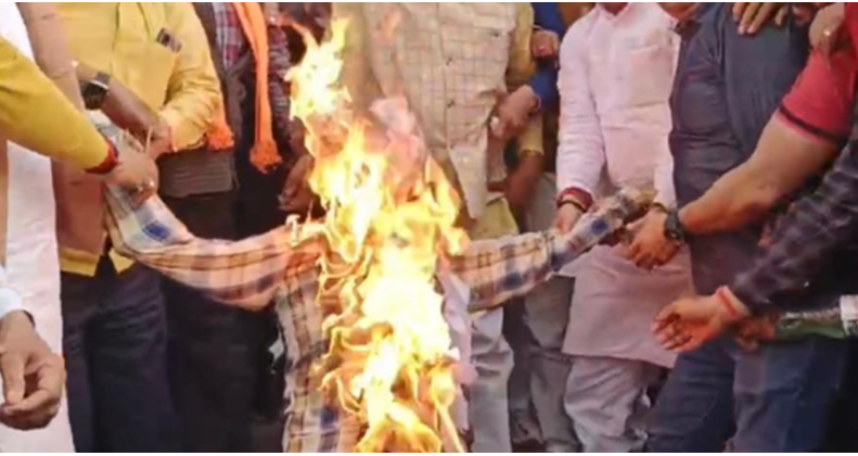 ये लोग बयान को लेकर राहुल गांधी से माफी मांगे जाने की मांग रहे थे। दरअसल कांग्रेस नेता व रायबरेली के सांसद राहुल गांधी ने हिंदू समाज को लेकर भाजपा पर टिप्पणी की थी। इस टिप्पणी को लेकर जिले के भाजपा जिलामंत्री अतुल सिंह के नेतृत्व में लोग मुसाफिरखाना तहसील गेट पहुंचे। जहां राहुल गांधी के खिलाफ जमकर नारेबाजी की साथ ही उनका पुतला भी फूंका।