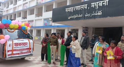 मधुबनी। बाल विवाह मुक्त भारत अभियान के तहत मधुबनी समाहरणालय परिसर से उप-निदेशक सह जिला जनसंपर्क पदाधिकारी, परिमल कुमार, पुलिस उपाधीक्षक, मुख्यालय, रश्मि, सहायक निदेशक, सामाजिक सुरक्षा, नितेश पाठक, सी.डबल्यू. सी. अध्यक्ष, रविन्द्र कुमार, वरीय उप समाहर्ता, सिम्पा ठाकुर के द्वारा संयुक्त रूप से जागरूकता वाहन को हरी झंडी दिखाकर रवाना किया गया। इस अवसर पर सचिव, सर्वो प्रयास संस्थान, निर्मला कुमारी, केश वर्कर, वीणा चौधरी, हरि कुमार सन्नी सहित अन्य उपस्थित थे। बाल विवाह मुक्त भारत अभियान के तहत चाइल्ड हेल्पलाइन एवं सर्वो प्रयास संस्थान के द्वारा जागरुकता वाहन के माध्यम से लोगो को बाल विवाह के प्रति खबरदार करने के उद्देश्य से बताया जा रहा है कि बाल विवाह एक अपराध है। बाल विवाह कराने और करवाने वाले को 2 साल तक की सजा और 1 लाख रुपये तक का जुर्माना हो सकता है। 18 वर्ष से कम आयु की लड़की और 21 वर्ष से कम आयु के लड़के का विवाह बाल विवाह है। ऐसे विवाह को संपन्न कराना, करवाना या उसमें भाग लेना दंडनीय अपराध है। आइए हम सब मिलकर बाल विवाह मुक्त भारत का निर्माण करें। इस अवसर पर सभी अधिकारियों द्वारा बाल विवाह के उन्मूलन के प्रति अपने दृढ़ संकल्प को व्यक्त करते हुए हस्ताक्षर अभियान में भी भाग लिया गया। बाल विवाह करवाने वाले दोषी माता-पिता तथा 3 रिश्तेदारों को 2 साल तक की सजा और 1 लाख रुपये तक का जुर्माना या दोनों हो सकता है। बाल विवाह करवाने वाले पंडित, मौलवी एवं पादरी को भी सज़ा हो सकती है। बाल विवाह के लिए अपनी सेवा देने वाला नाई, हलवाई, बैंड एवं टेंट वाले अथवा जो भी वहाँ शामिल होंगे उन्हें 2 साल तक की सजा और 1 लाख रुपये तक का जुर्माना या दोनों हो सकते हैं। साथ ही बाल विवाह में शामिल होने वाले व्यक्ति को भी 2 साल तक की सजा और 1 लाख तक का जुर्माना या दोनों हो सकता है।