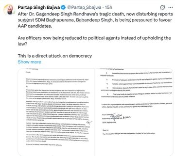 एसडीएम वालिया ने चीफ सेक्रेटरी से निष्पक्ष जांच कराने, अपनी सुरक्षा सुनिश्चित करने और उत्पीड़न रोकने की मांग की है। साथ ही उन्होंने एक महीने की छुट्टी और मोगा जिले से तबादले की भी मांग की है। जानकारी के अनुसार, एसडीएम बाबनदीप सिंह वालिया पत्र लिखने के बाद से छुट्टी पर हैं और उनके फोन भी बंद आ रहे हैं। पत्र के संबंध में उनसे संपर्क करने का प्रयास किया गया, लेकिन उनका फोन बंद मिला। न ही किसी अधिकारी ने इस मामले में कोई जानकारी दी है।