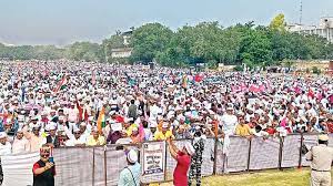 रामलीला मैदान में जुटी आप समर्थकों की भीड़