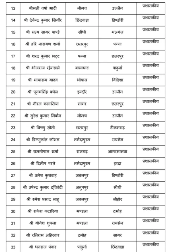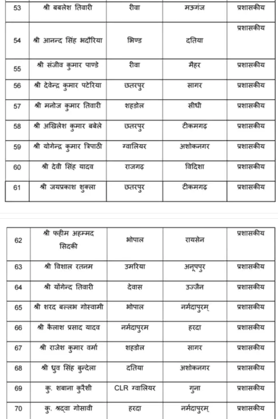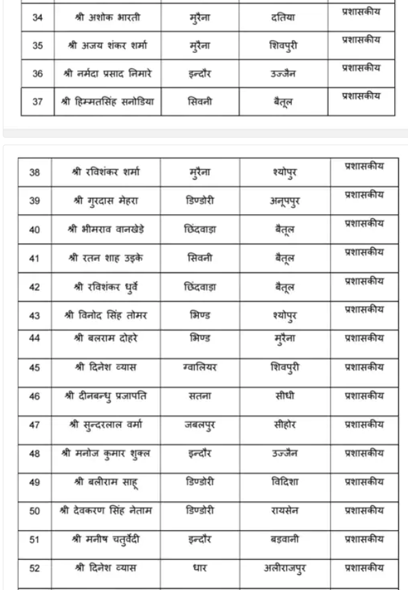 नए जिलों में अधिकारियों की तैनाती, प्रशासनिक फेरबदल