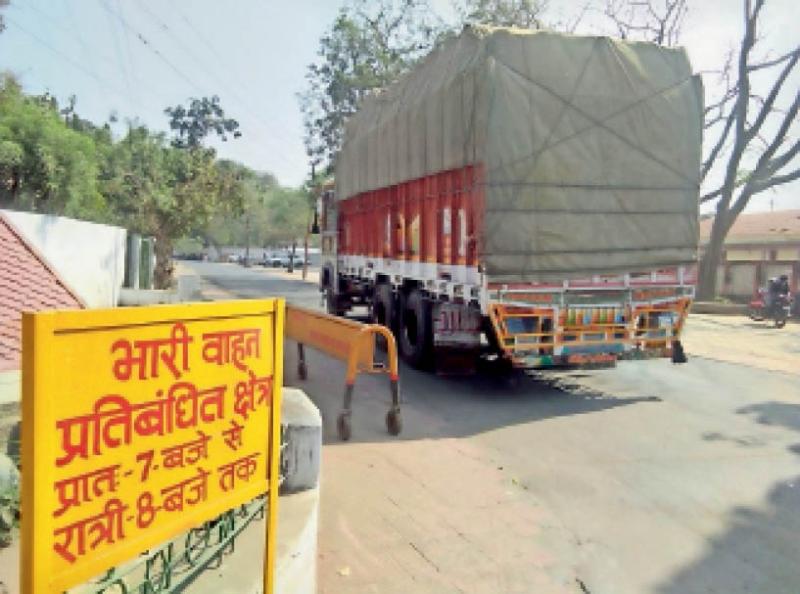 प्रतिबंध के बावजूद शहर के अंदर घुस रहे ट्रक और डंपर