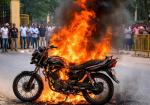कोर्ट परिसर के नजदीक बाइक में लगी आग, चालक ने कूदकर बचाई जान