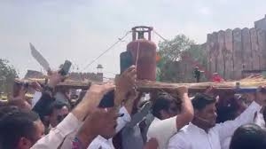कांग्रेस ने निकाली सिलिंडर शव यात्रा