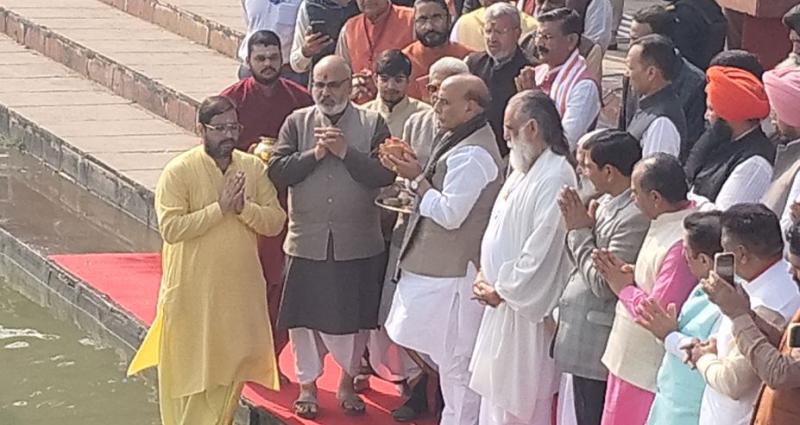 अंतरराष्ट्रीय गीता महोत्सव के पावन अवसर पर केंद्रीय रक्षा मंत्री राजनाथ सिंह ने सोमवार को कुरुक्षेत्र पहुंचे। यहां उन्होंने पवित्र ब्रह्म सरोवर पर तीर्थ पूजन किया। मंत्रोच्चारण और शंखनाद के बीच उन्होंने सरोवर के तट पर पूजन-अर्चना की, जो इस धार्मिक-सांस्कृतिक उत्सव की शुरुआत का प्रतीक बना।