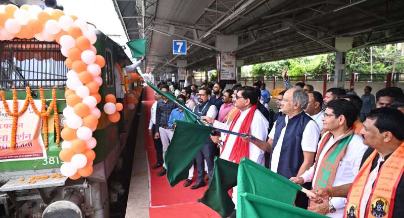 रायपुर : मुख्यमंत्री विष्णुदेव साय के पहल पर शुरू की गई रामलला दर्शन योजना के तहत चलाई जा रही विशेष ट्रेन आज रायपुर रेल्वे स्टेशन के प्लेटफार्म नंबर-07 से रवाना हुई। राजस्व मंत्री टंक राम वर्मा ने हरी झंडी दिखाकर ट्रेन को रवाना किया। इस विशेष ट्रेन से 850 श्रद्धालुओं का जत्था अयोध्या धाम के लिए रवाना हुआ। इस यात्रा से श्रद्धालुओं में भारी उत्साह है। श्रद्धालुगण भगवान राम का जय-जयकार करते हुए अयोध्या धाम के लिए निकल चुके हैं। ट्रेन में श्रद्धालु भजन-कीर्तन करते हुए भक्तिमय माहौल में रामलला के दर्शन को जा रहे है।
