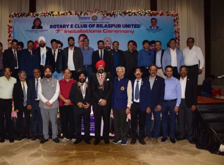 बिलासपुर। रोटरी ई क्लब ऑफ बिलासपुर यूनाइटेड का 7वां शपथ ग्रहण समारोह स्थानीय होटल रेड डायमंड में संपन्न हुआ। कार्यक्रम में मुख्य अतिथि के तौर पर विधायक अमर अग्रवाल एवं विशिष्ट अतिथि डॉ. देविंदर सिंह उपस्थित थे। निवर्तमान अध्यक्ष प्रकाश माहेश्वरी और निवर्तमान सचिव रौनक साव ने नवनिर्वाचित अध्यक्ष गुरमीत सिंह अरोरा एवं नवनिर्वाचित सचिव डॉ. चरणजीत गंभीर को क्लब की कमान सौंपी।