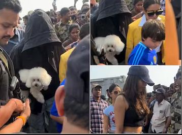 उन्हें मुंबई के गेटवे ऑफ इंडिया के पास स्थित जेटटी पर पैपराजी ने स्पॉट किया। पैपराज़ो द्वारा शेयर किए गए वीडियो में शाहरुख खान अपने कुत्ते के साथ कार की ओर जा रहे थे, और उन्होंने अपनी पहचान छिपाने के लिए काले रंग की हुडी पहनी थी। शाहरुख ने काले रंग की टी-शर्ट और मैचिंग हुडी के साथ कार्गो जीन्स पहनी थीं। वहीं, उनके छोटे बेटे अबराम नीली जर्सी और सफेद शॉर्ट्स में नजर आए। गौरी खान इस दौरान हमेशा की तरह स्टाइलिश दिख रही थीं, सफेद शर्ट के ऊपर ब्राइट येलो जैकेट और काले जीन्स पहने हुए। वह अबराम का हाथ पकड़े हुए थीं, जबकि शाहरुख परिवार के साथ कार में बैठने के लिए पीछे चल रहे थे। कुछ समय बाद, शाहरुख की बेटी सुहाना खान अपनी कजिन आलिया छिब्बा के साथ पहुंची।