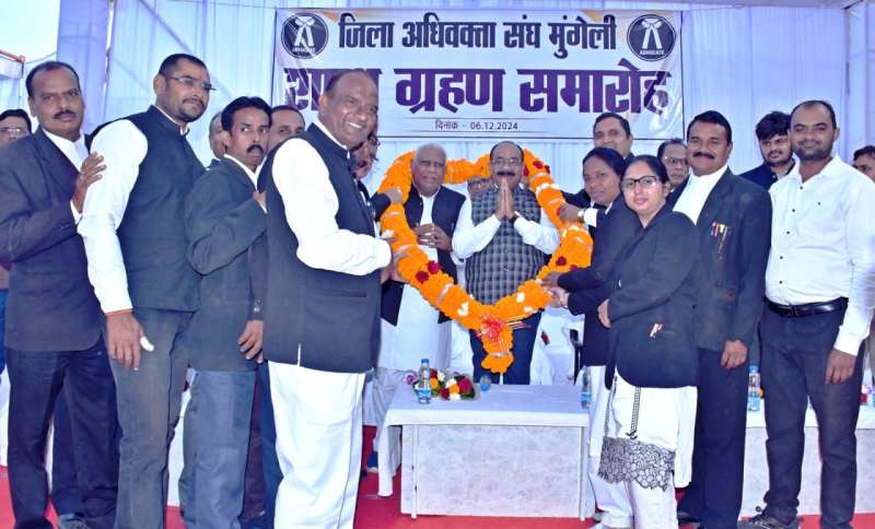 विधायक पुन्नूलाल मोहले ने अधिवक्ता संघ के नवनिर्वाचित पदाधिकारियों को बधाई और शुभकामनाएं देते हुए आशा जताई कि सभी पदाधिकारी समाज की सेवा के लिए बेहतर कार्य करेंगे। जिला एवं सत्र न्यायाधीश चन्द्र कुमार अजगल्ले ने मुंगेली बार की सराहना करते हुए अधिवक्ताओं को बिना किसी भेदभाव के पीड़ितों को समभाव से न्याय दिलाने की बात कही। कलेक्टर राहुल देव, पुलिस अधीक्षक भोजराम पटेल, पूर्व सांसद लखन लाल साहू, मुंगेली नगर पालिका के अध्यक्ष संतुलाल सोनकर, मुख्य न्यायिक मजिस्ट्रेट बलराम देवांगन, द्वितीय व्यवहार न्यायाधीश वर्ग-एक वरिष्ठ श्रेणी श्रीमती रेशमा बैरागी पटेल, वरिष्ठ अधिवक्ता गिरीश शुक्ला और संजय गुप्ता भी समारोह में मौजूद थे।