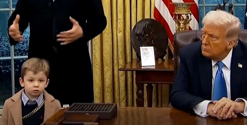 ट्रंप के साथ इस मुलाकात का जो वीडियो सामने आया है, उसमें एलन मस्क का बेटा अजीब आवाजें निकालता और नाक खुजलााते हुए नजर आ रहा है। वीडियो में एक जगह देखा जा सकता है कि, मस्क का बेटा नाक में उंगली कर रहा है और 145 साल पुरानी रेजोल्यूट डेस्क के पास में ही खड़ा है।