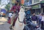 पेट्रोल नहीं मिला तो घोड़े पर निकला कर्मचारी, देवास का वीडियो वायरल
