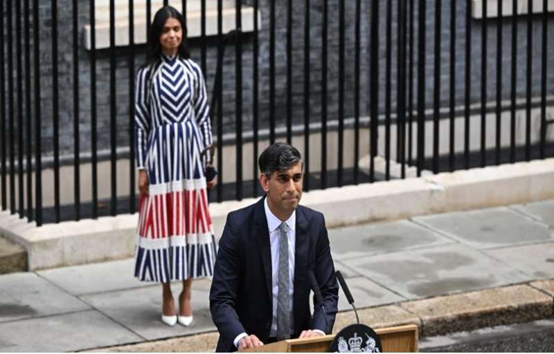 ब्रिटेन के आम चुनाव में पूर्व प्रधानमंत्री ऋषि सुनक को करारी हार का सामना करना पड़ा। 14 साल बाद लेबर पार्टी ने बड़े बहुमत के साथ कंजर्वेटिव को हराकर जीत हासिल की है। डाउनिंग स्ट्रीट में प्रधानमंत्री कार्यालय के बाहर सुनक के अपना विदाई भाषण दिया। उनकी पत्नी अक्षता मूर्ति अपने पति के पीछे शांति से खड़ी होकर भाषण सुनते हुए नजर आई। हालांकि, अक्षता मूर्ति ने अपने पति के इस्तीफे के भाषण के दौरान एक ऐसी ड्रेस पहनी जो अब सोशल मीडिया पर चर्चा का विषय बन गई है। जी हां, अक्षता की इस ड्रेस को काफी ट्रोल किया जा रहा है।दरअसल, अक्षता ने नीले, सफेद और लाल रंग की पैटर्न वाली एक ड्रेस पहनी थी। सुनक के भाषण के दौरान सबकी निगाहें उनकी ड्रेस पर गई। इस ड्रेस की कीमत 395 पाउंड यानी 42 हजार रुपये की है। अब इस ड्रेस में ऐसा क्या था जो मजाक का कारण बन गया। दरअसल, नीला, सफेद और लाल कलर ब्रिटेन के फ्लैग से बिल्कुल मिलता-जुलता है।