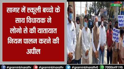 सागर में स्कूली बच्चो के साथ विधायक ने लोगो से की यातायात नियम पालन करने की अपील