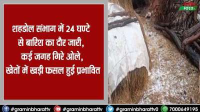 शहडोल संभाग में 24 घण्टे से बारिश का दौर जारी, कई जगह गिरे ओले, खेतों में खड़ी फसल हुई प्रभावित
