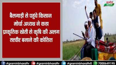 बैलगाड़ी से पहुंचे किसान मोर्चा अध्यक्ष ने कहा प्राकृतिक खेती से कृषि की अलग तस्वीर बनाने की कोशिश
