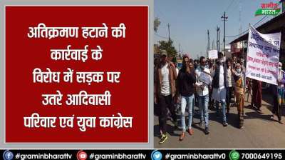 अतिक्रमण हटाने की कार्रवाई के विरोध में सड़क पर उतरे आदिवासी परिवार एवं युवा कांग्रेस