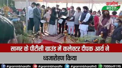 सागर के पीटीसी ग्राउंड में कलेक्टर दीपक आर्य ने ध्वजारोहण किया