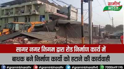 सागर नगर निगम द्वारा रोड निर्माण कार्य में बाधक बने निर्माण कार्यो को हटाने की कार्यवाही