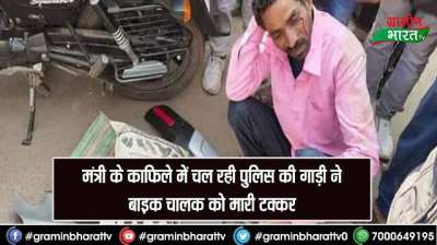 मंत्री के काफिले में चल रही पुलिस की गाड़ी ने बाइक चालक को मारी टक्कर