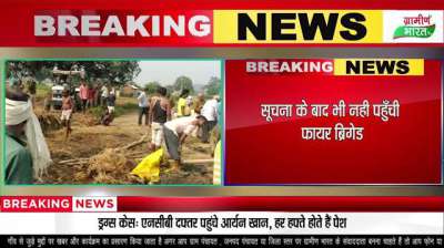 धान की फसल में लगी आग ट्रेक्टर थ्रेसर जलकर ख़ाक