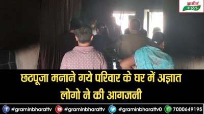 छठपूजा मनाने गये परिवार के घर में अज्ञात लोगो ने की आगजनी